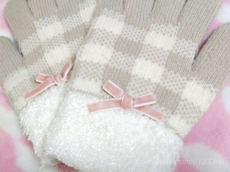 家にあった娘の手袋にピンクのリボンがついていたので、サムネ用に拝借。