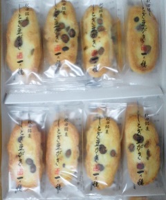 秋田産のお米で作った、黒豆入りのおかきです。